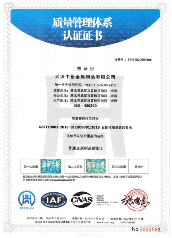 武漢中裕金屬制品有限公司(以下簡(jiǎn)稱公司)成立于1996年8月,民營私人獨(dú)資企業(yè)。2010年8月投資1800余萬元,在前川油崗工業(yè)園征地20畝,新建5000平方米的生產(chǎn)車間和1100平方米的辦公大樓,2011年8月全部峻工投入使用。